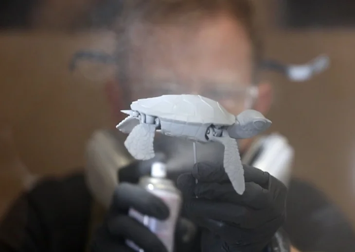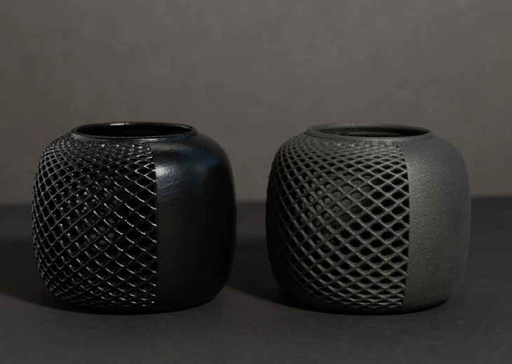 Out of the printer, parts are a neutral shade of gray. Parts can be dyed using black ink.